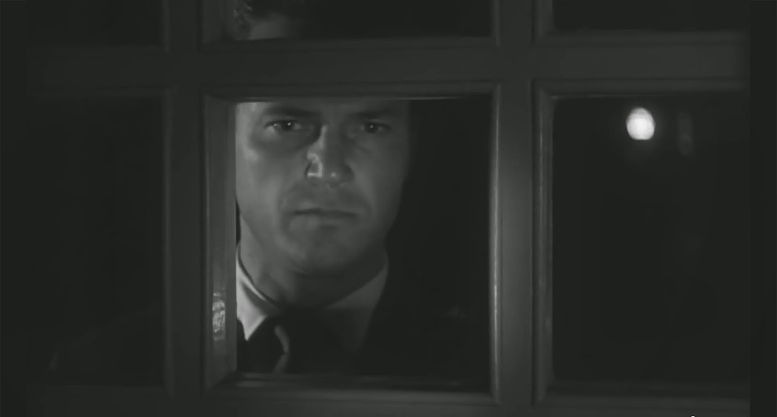Regardless on my political and social views on this noir trope, the shot is quite interesting. Of course, chiaroscuro lighting is used heavily, the under light casting dramatic shadows across her face and onto the back wall. The smoke coming out of the box, which only increases as the scene goes on, again shows mystery and danger of whatever is in the box (a nuclear bomb in case you were wondering).
